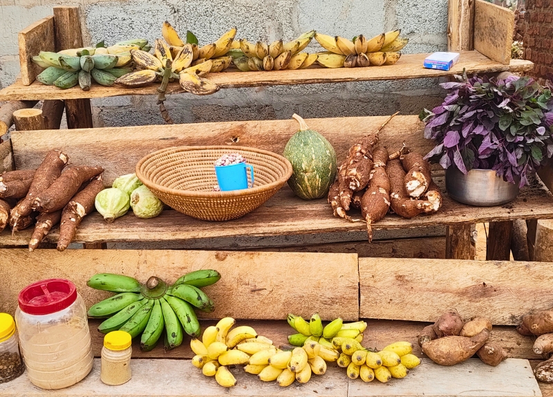 Dieser Kühlraum steht eindrucksvoll für die Kreativität des Teams von NCFG. Ziel der Organisation ist es, klimaresiliente Wege des organischen Landbaus zu entwickeln. Durch Lagerung wie hier im Kohle-Kühlraum, Verarbeitung und gemeinsame Vermarktung verbessert NCFG Ernährung und Einkommen der Kleinbäuer*innen im Distrikt Mpigi.