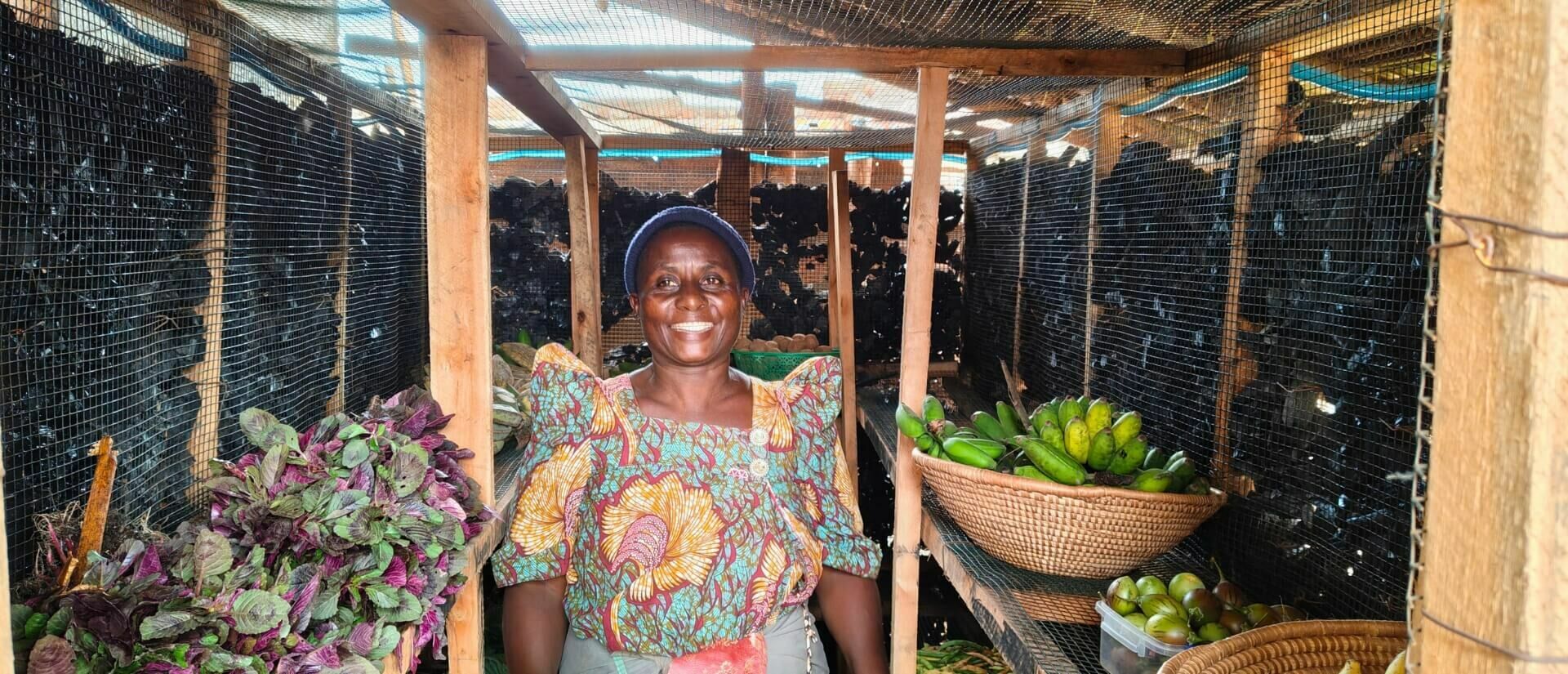Wir stehen mit Agate Nakawonge, „information officer“ der Kahongo Community Collection Group, im Kühlraum. Sie berichtet, dass sich Salat hier zwei bis drei Tage lang frisch hält, Gemüse und Obst sogar sechs Tage oder mehr. Wir spüren es auf unserer Haut: Im „Charcoal Cooler“ ist es einige Grad kühler als draußen in der Sonne.