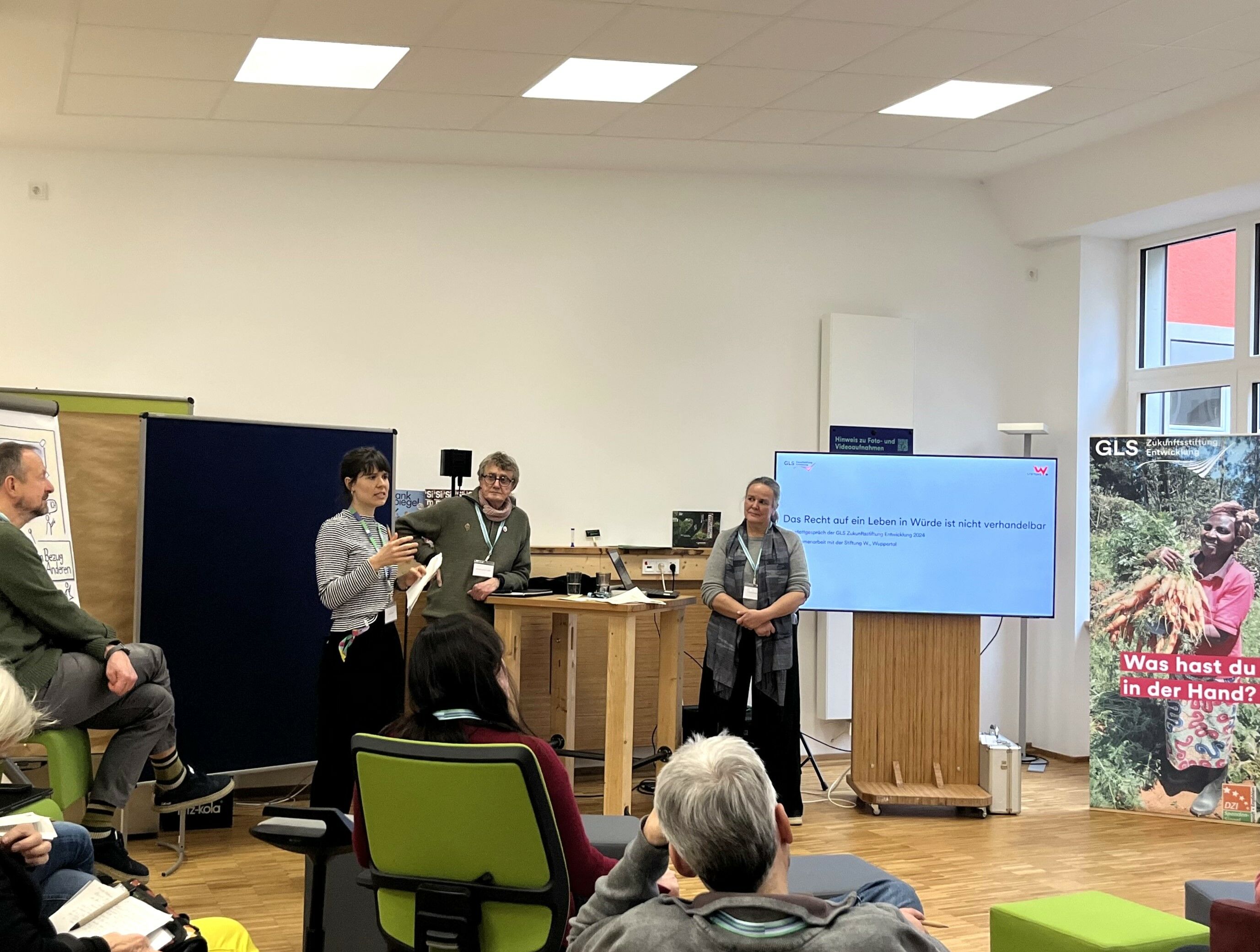 Das jährliche Werkstattgespräch der GLS Zukunftsstiftung Entwicklung ist mehr als nur eine Gelegenheit zum Austausch – es ist ein Raum für offenes Denken, ein Denken ohne Geländer, das Teilnehmende dazu anregt, tief in die drängenden Fragen der Gegenwart einzutauchen und nach Lösungen für die Zukunft zu suchen. Dazu kamen die Mitarbeitenden und Gremienmitglieder der Stiftung zusammen. Wir luden Vertreter*innen von Organisationen ein, die zu Flucht und Migration arbeiten; zum Rechtsruck in der Gesellschaft; zu Seenotrettung sowie junge Vertreter*innen von Organisationen der Zivilgesellschaft wie Mission Lifeline, Ende Gelände, Fridays for Future.