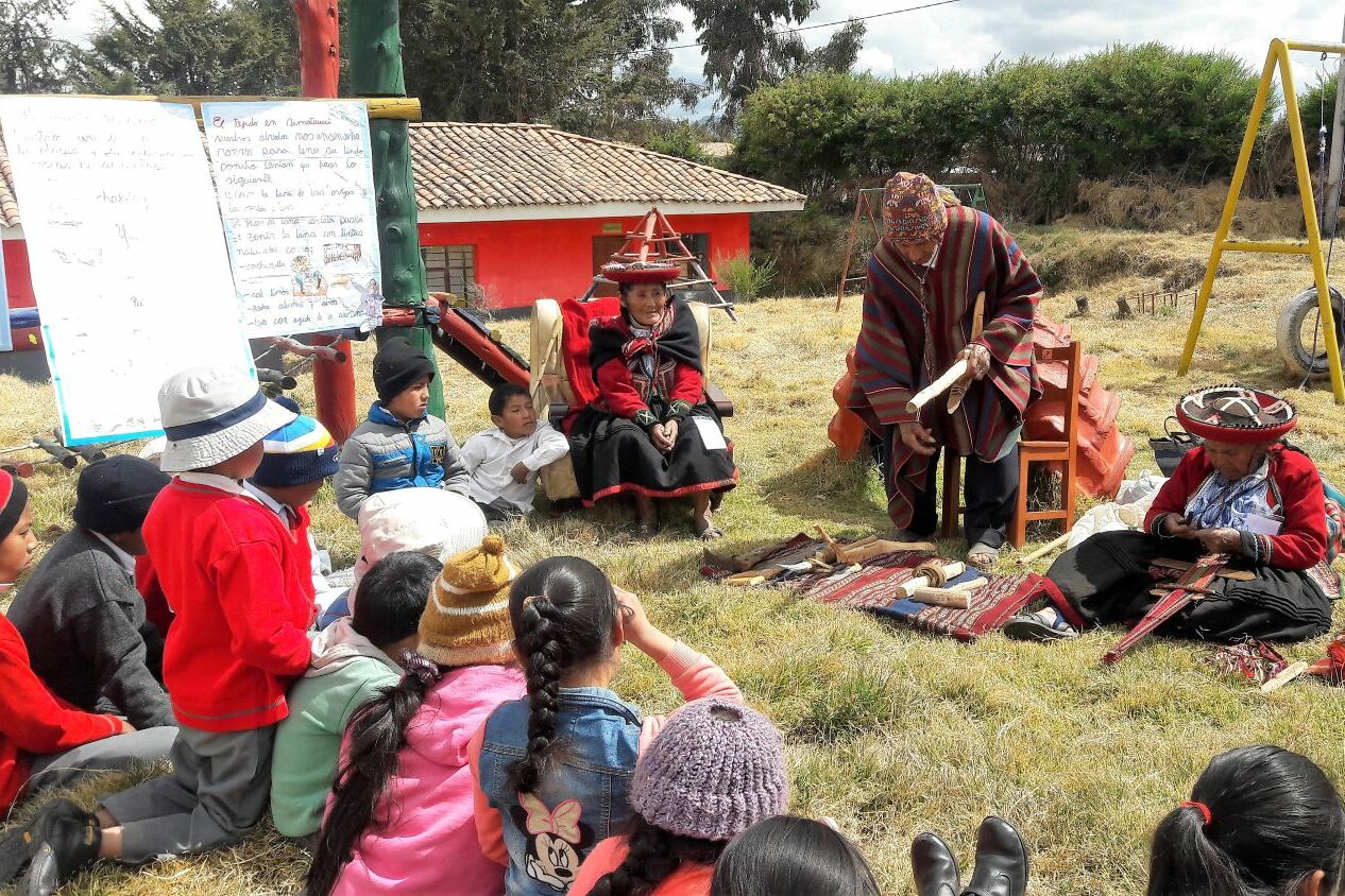 "In der andinen Kultur", berichtet Lizbeth Escudero López, "wurden alte Menschen sehr geachtet. Wissen wurde mündlich von einer Generation an die nächste weitergegeben. Heute gelten die alten Menschen vielfach nichts mehr. Und doch haben sie uns so viel zu sagen. Sie sind die Hüter*innen der andinen Kultur, sie kennen unsere Mythen und Legenden, die andine Vorstellung vom Kosmos, kennen vielfach noch Heilkräuter oder Techniken wie das traditionelle Spinnen, Weben, Färben, das Knüpfen von Teppichen. Sie wissen, wie mit einfachsten Werkzeugen der Boden zu bearbeiten ist, wie lokales Saatgut gepflegt wird." Um Großeltern Anerkennung zu zollen, ihnen wieder Selbstbewusstsein zu geben und ihr Wissen an die junge Generation zu übertragen, startete sie das Projekt "Abuelos Yachay – die weisen, lehrenden Großeltern."