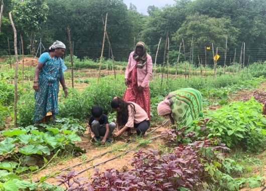 Doch Vishala Padmanabhan und ihr Team erkannten auch: Ihre Arbeit war sehr auf die städtischen Verbraucher*innen ausgerichtet. Um den Fokus mehr auf die Produzent*innen zu legen, zog sie in ein Dorf und begann, mit Frauenselbsthilfegruppen zu arbeiten. Zusammen mit ihnen entwickelte sie als neues Einkommensmodell für Frauen gemeinschaftlich und organisch betriebene Gärten, sogenannte Kai-Thota-Gärten. Sie sind Teil der Konsumgenossenschaft.