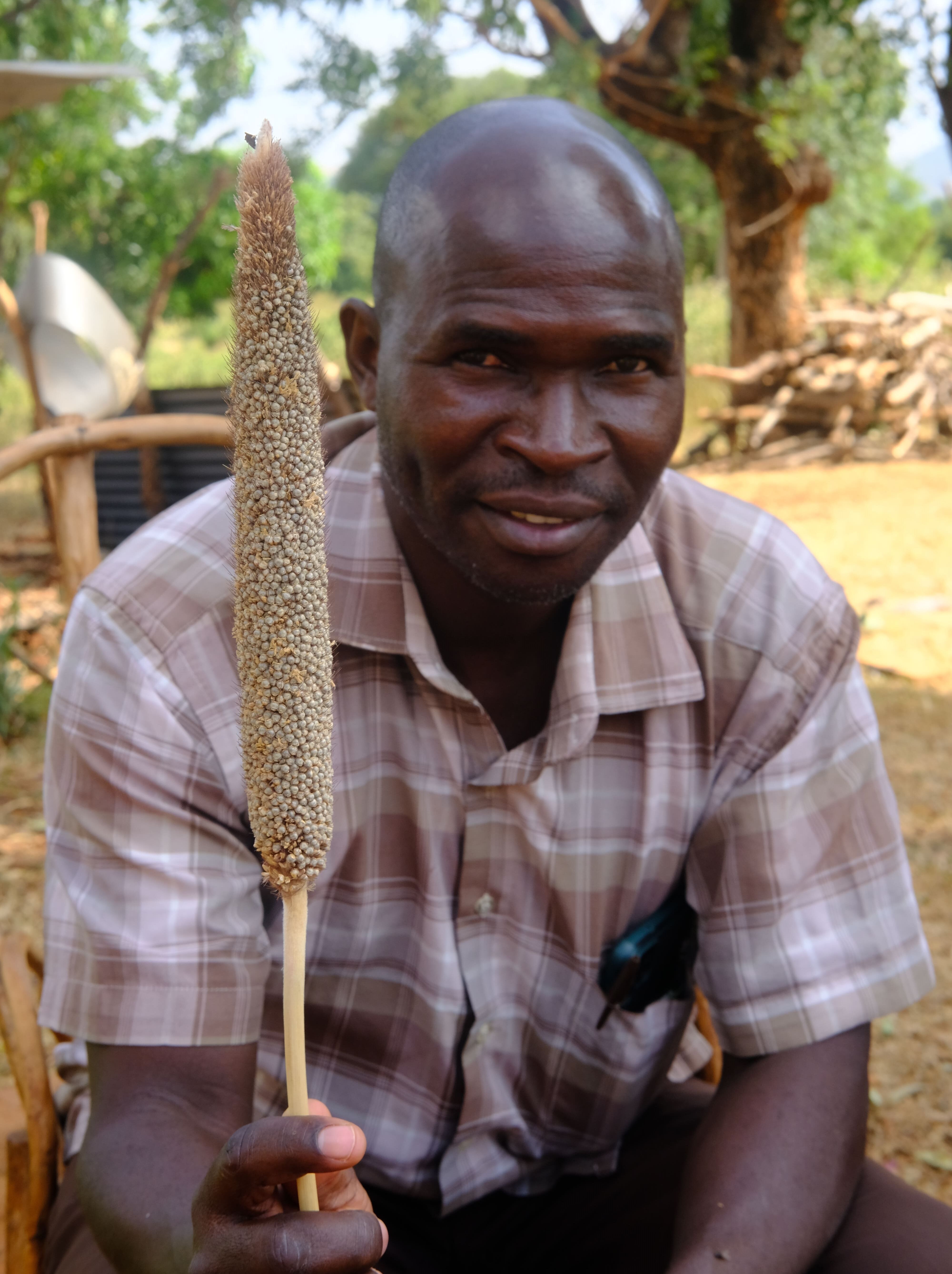 Wir möchten den Wertschöpfungsprozess des Brotes bis zu seinem Ursprung zurückverfolgen und gehen in die kleine provisorische Bäckerei, aus der es so verführerisch duftet. Vor dem Lehmofen steht Chabari Kiura, Leiter der Organisation SAPAD. Stolz präsentiert er die verschiedenen Getreidesorten, die die kleinbäuerlichen Betriebe an die Bäckerei verkaufen. Fünf verschiedene Arten Fingerhirse, elf Sorten Sorghum und verschiedene Manioksorten werden zu Mehl verarbeitet und verbacken.