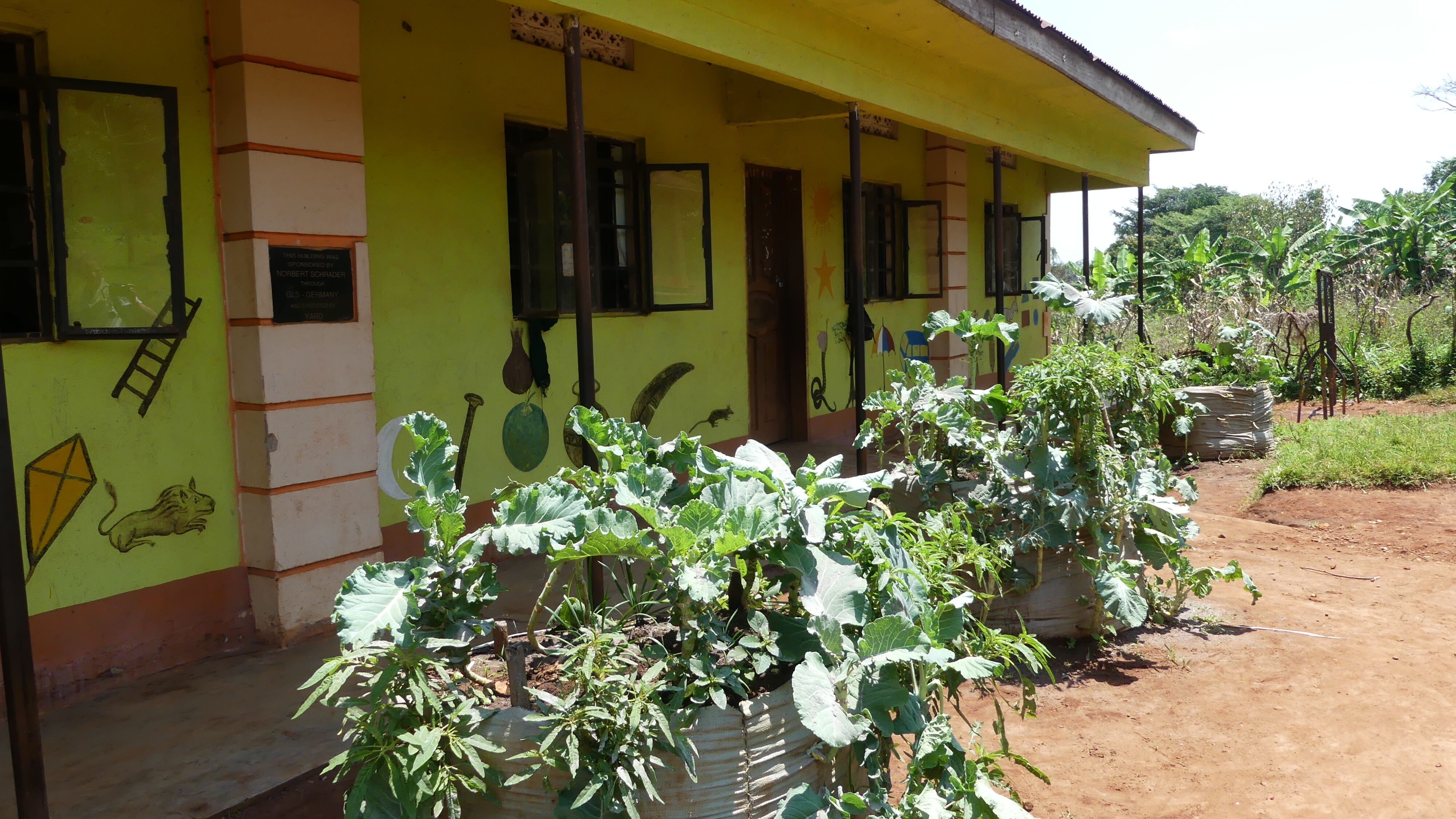 Die Familien der Kinder, die die Kisakye Primary School besuchen, erwirtschaften ihr Einkommen als Kleinbäuerinnen und -bauern. Sie bauen Obst und Gemüse an und halten sich eventuell ein paar Hühner oder Ziegen. Dies reicht für den Eigenbedarf, zum Verkauf bleibt kaum etwas übrig. Sie können keine Schulgebühren für ihre Kinder zahlen und auch nicht garantieren, dass ihre Kinder etwas zu essen in die Schule mitnehmen. Deshalb wird gemeinsam in der Schule gegessen. Vormittags gibt es ein Frühstück, mittags ein nahrhaftes Mittagessen und Früchte. Gut ernährte Kinder lernen konzentrierter und leichter. Einen Teil dieser Versorgung erwirtschaftet die Schule in ihrem eigenen acht Hektar großen Schulgarten. Dort werden Bananen, Kassava, Mais, Wassermelonen, Kürbisse, Bohnen und weitere Gemüse und Früchte für die Schulmahlzeiten angebaut.