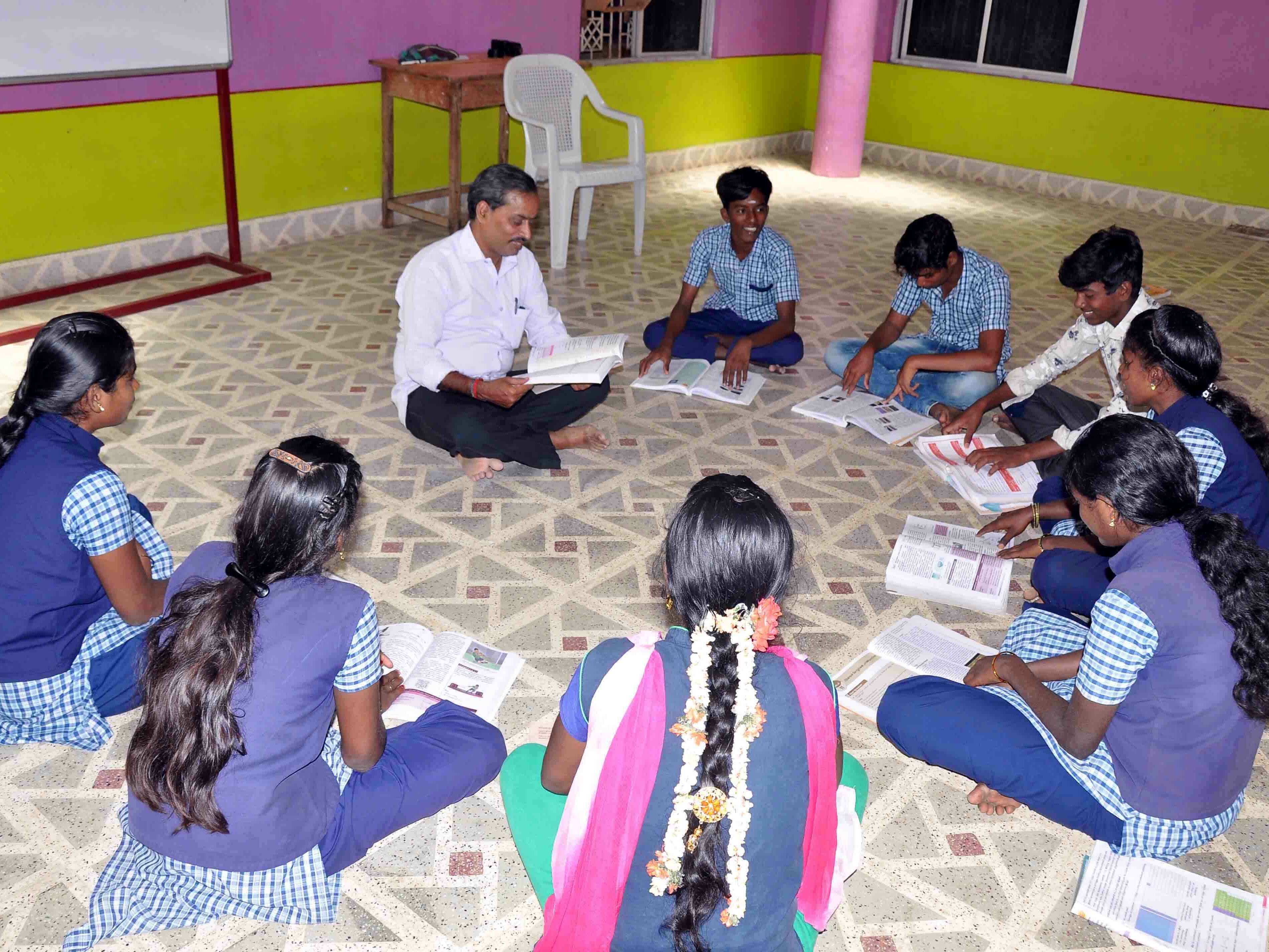 Ab 7:00 Uhr lesen und schreiben die älteren Kinder, im Anschluss haben sie eine halbstündige Pause. Von 8:30 Uhr bis 16:30 Uhr besuchen die Kinder die Schule. Bis zur 5. Klasse ist das die Panchayat Union Elementary School. Nach der 5. Klasse wechseln sie auf die Higher Secondary School, die sie nach der 12. Klasse abschließen.