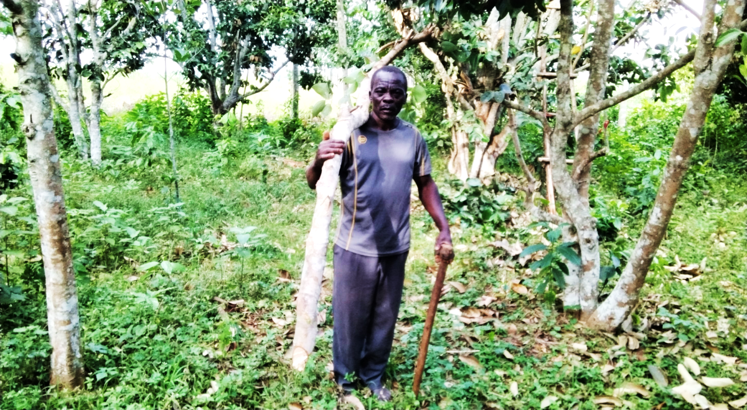Einer von ihnen ist Herr Gabula, der sich auf die Produktion von Zimt spezialisiert hat. Auf seinem 2,6 Hektar großen Grundstück in der Gemeinde Nangombe im Distrikt Wakiso wachsen rund 2.000 duftende Zimtbäume. „Zunächst verkauften wir lediglich kleine Zweige der Bäume, die Blätter sind in Uganda als Tee beliebt. Von den Mitarbeitenden von Kasuku Organics erfuhren wir, dass wir deutlich mehr verdienen können, wenn wir auch die Rinde verarbeiten. Daraufhin nahm ich an Schulungen zu Ernte- und Nachernteverfahren, hygienischer Lagerung, Qualitätsmanagement, Verpackung und Etikettierung teil, die Kasuku Organics in unserer Gemeinde durchführte. Die Mitarbeitenden berieten uns zudem zur richtigen Pflege der Bäume“, erinnert sich der Vater von sechs Kindern.