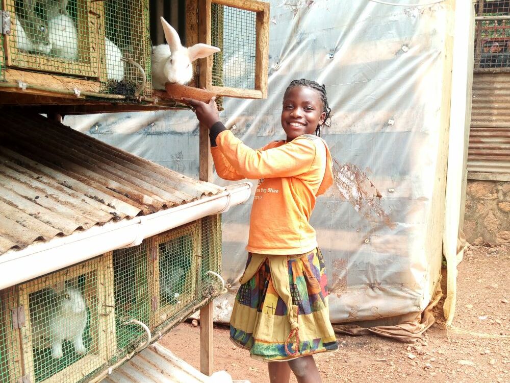 Die Kaninchenhaltung stellt an unseren Partnerschulen in Uganda eine wertvolle Komponente des praxis-orientierten Unterrichts dar. Indem die Kinder in den Schulen die Kaninchen täglich füttern, nach ihrem Wohlbefinden und ihrer Entwicklung schauen, üben sie sich darin, Verantwortung zu übernehmen. Während des Unterrichts lernen die Schüler*innen, das richtige Futter zu sammeln und einfache Krankheitssymptome zu erkennen. Wenn diese Grundlagen der Kaninchenhaltung gefestigt sind und die Schüler*innen weiterhin Interesse zeigen, dürfen sie Tiere mit nach Hause nehmen.